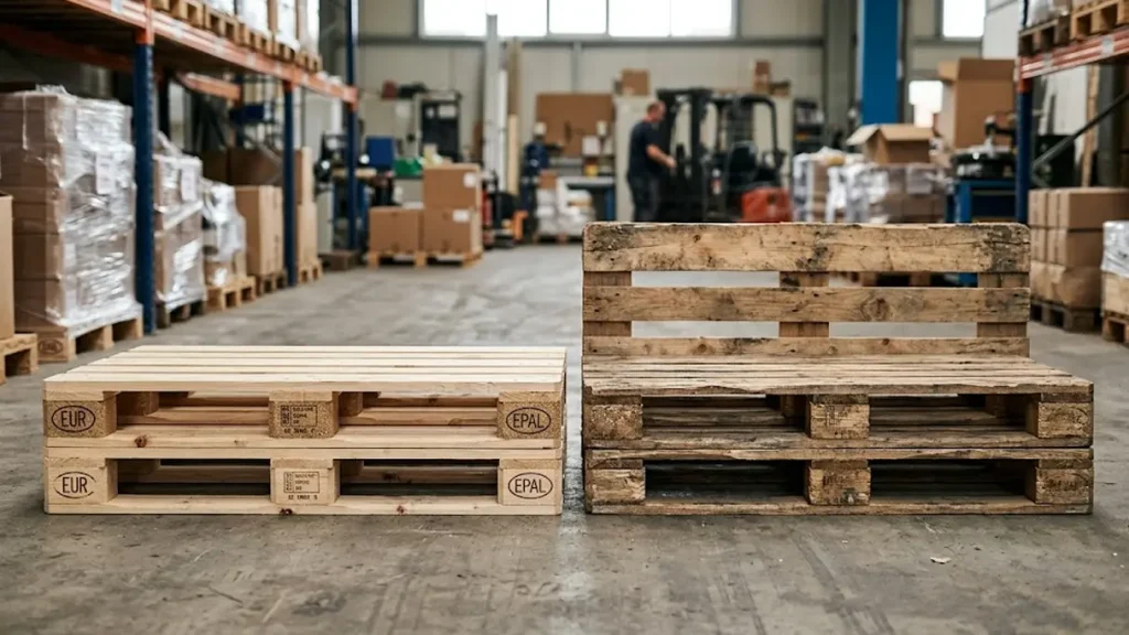 最も分かりやすいポイントはロゴの有無です。楕円形の「EPAL」刻印がない場合、その時点で非認証パレットです。