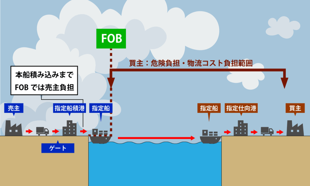 FOBは「船積港で積込み完了」を境に責任が切り替わるため、区切りが明確です。